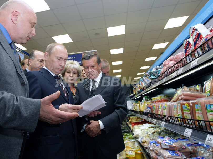 25日の露コメルサン(Kommersant)紙によると前日、プーチン首相は官邸で行っていた小売業界の状況に関する会議を中断し、出席者を連れて近くにあるロシア最大の小売チェーン、ペレクリョーストック(Perekrestok)の1店舗を訪れた。