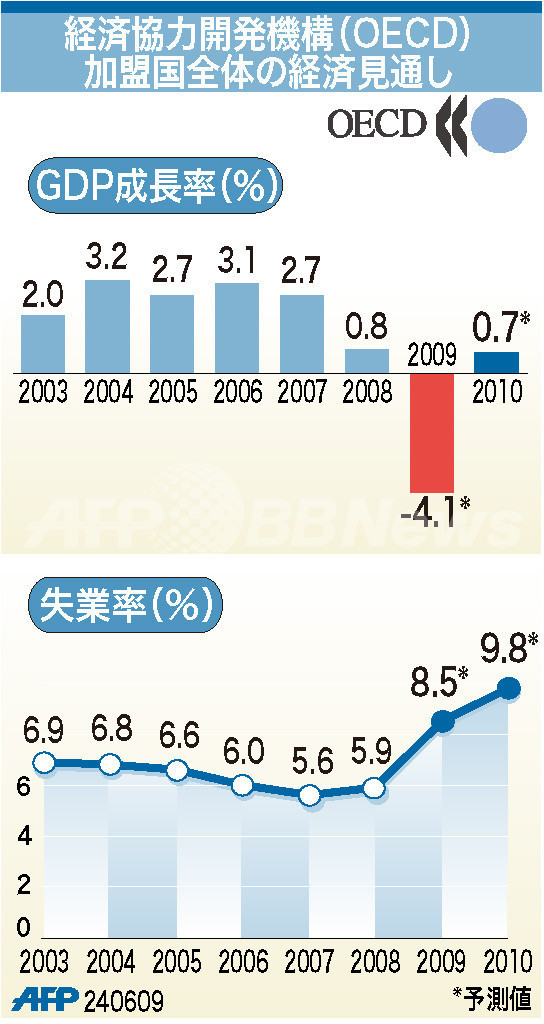 ニュース 政治・経済 図解 【図解】OECD経済見通し 2009年6月25日 15:57 発信地:その他 [ 例外 その他 ] このニュースをシェア (c)AFP 【6月25日 AFP】経済協力開発機構(OECD)は24日、経済見通しを発表、加盟国全体の実質GDP成長率は2009年がマイナス4.1%で、10年はプラス0.7%になると予測した。(c)AFP<ニュース解説画像一覧へ> 政治・経済 一覧へ> メディア・報道関係・法人の方向け 写真・動画 購入のお問合せ>