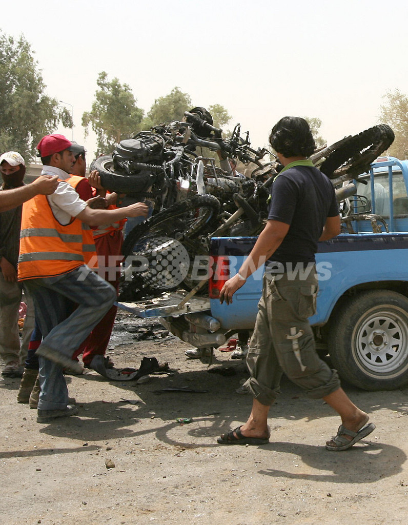 一方、バグダッド南西部ではバイクに仕掛けられた爆弾が爆発し、1人が死亡、3人が負傷した。(c)AFP/Nafia Abdel Jabbar