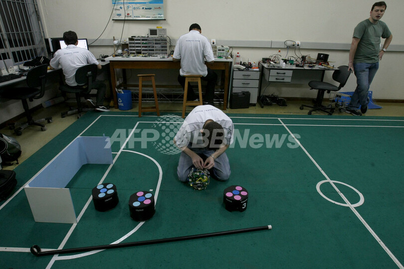 ニュース 環境・科学 ゴール目指して最終調整、ロボカップ2009 2009年6月27日 14:05 発信地:サンベルナルドドカンポ/ブラジル [ 中南米 ブラジル ] このニュースをシェア ‹ › ❮ 6/13 ❯ オーストリアのグラーツ(Graz)で29日から来月5日までロボット版サッカーワールドカップ「ロボカップ(RoboCup)2009」が開催される。大会には世界40か国から約400チームが参加し、腕を競う。写真は、ブラジル・サンパウロ(Sao Paulo)の南25キロに位置するサンベルナルドドカンポ(Sao Bernardo do Campo)の大学でロボットをテストするロボカップ出場予定のコンピューター工学専攻の学生たち(2009年6月26日撮影)。(c)AFP/Mauricio LIMA【参考】ロボカップ2009公式サイト(英語) 画像作成中 ! 【6月27日 AFP】オーストリアのグラーツ(Graz)で29日から来月5日までロボット版サッカーワールドカップ「ロボカップ(RoboCup)2009」が開催される。大会には世界40か国から約400チームが参加し、腕を競う。(c)AFP【参考】ロボカップ2009公式サイト(英語) 環境・科学 一覧へ> メディア・報道関係・法人の方向け 写真・動画 購入のお問合せ>