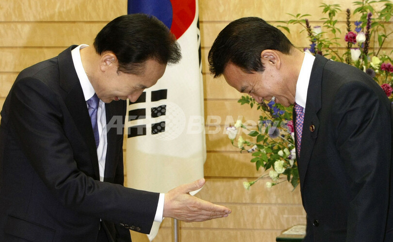 ニュース 政治・経済 李明博大統領が来日、麻生首相と会談 2009年6月28日 17:49 発信地:東京 [ アジア・オセアニア 東京 ] このニュースをシェア ‹ › ❮ 1/3 ❯ 来日した韓国の李明博(Lee Myung-bak)大統領とお辞儀しあう麻生太郎(Taro Aso)首相(2009年6月28日撮影)。(c)AFP/TORU HANAI 画像作成中 ! 【6月28日 AFP】28日に来日した韓国の李明博(Lee Myung-bak)大統領は同日、麻生太郎(Taro Aso)首相と会談し、核開発問題などで緊張する対北朝鮮情勢などについて協議した。(c)AFP 政治・経済 一覧へ> メディア・報道関係・法人の方向け 写真・動画 購入のお問合せ>