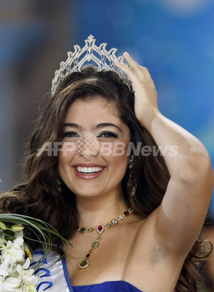 レバノンのアドマ(Adma)で開かれた「ミス・レバノン2009(Miss Lebanon 2009)」の最終選考会で優勝した18歳のMartine Indraousさん(2009年6月26日撮影)。(c)AFP/JOSEPH BARRAK