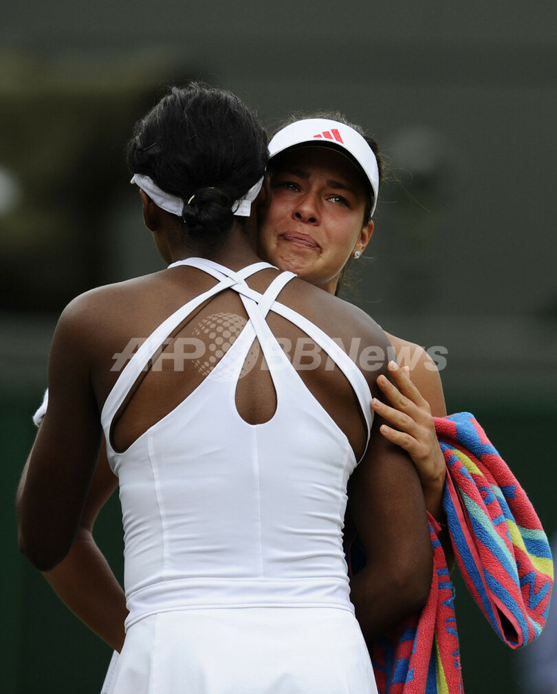 【6月30日 AFP】(写真追加、記事更新、一部訂正)テニス、ウィンブルドン選手権(The Championships Wimbledon 2009)女子シングルス4回戦。大会第3シードのヴィーナス・ウィリアムス(Venus Williams、米国)は、大会第13シードのアナ・イワノビッチ(Ana Ivanovic、セルビア)と対戦。ヴィーナスは、第1セットを6-1で先取して迎えた第2セットの途中(0-1)でイワノビッチが途中棄権したため、準々決勝に進んだ。