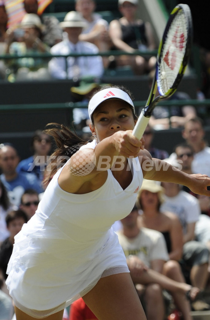 【6月30日 AFP】(写真追加、記事更新、一部訂正)テニス、ウィンブルドン選手権(The Championships Wimbledon 2009)女子シングルス4回戦。大会第3シードのヴィーナス・ウィリアムス(Venus Williams、米国)は、大会第13シードのアナ・イワノビッチ(Ana Ivanovic、セルビア)と対戦。ヴィーナスは、第1セットを6-1で先取して迎えた第2セットの途中(0-1)でイワノビッチが途中棄権したため、準々決勝に進んだ。