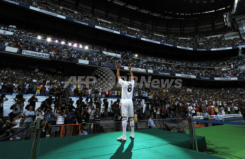 カカの入団発表で約8万人収容のサンチャゴ・ベルナベウはほぼ満員となり、多くのファンがブラジル国旗を振っていた。