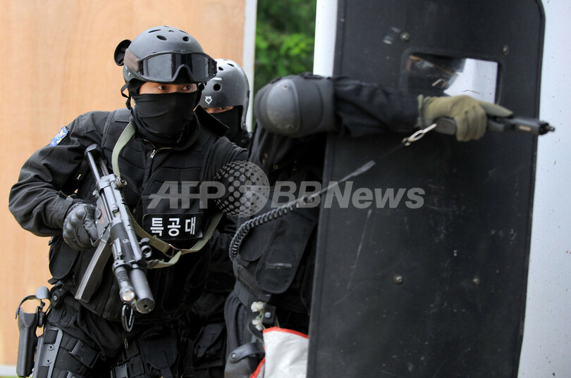 ニュース 政治・経済 韓国海洋警察庁、特殊部隊の対テロ訓練を公開 2009年7月1日 15:16 発信地:仁川/韓国 [ 韓国・北朝鮮 韓国 ] このニュースをシェア ‹ › ❮ 2/8 ❯ 韓国海洋警察庁は6月30日、仁川(Incheon)の訓練施設で、同庁の特殊部隊「特攻隊(Special Sea Attack Team、SSAT)」による対テロ演習を公開した。写真は、演習で建物に突入する特攻隊隊員(2009年6月30日撮影)。(c)AFP/JUNG YEON-JE 画像作成中 ! 【7月1日 AFP】韓国海洋警察庁は6月30日、仁川(Incheon)の訓練施設で、同庁の特殊部隊「特攻隊(Special Sea Attack Team、SSAT)」による対テロ演習を公開した。(c)AFP 政治・経済 一覧へ> メディア・報道関係・法人の方向け 写真・動画 購入のお問合せ>