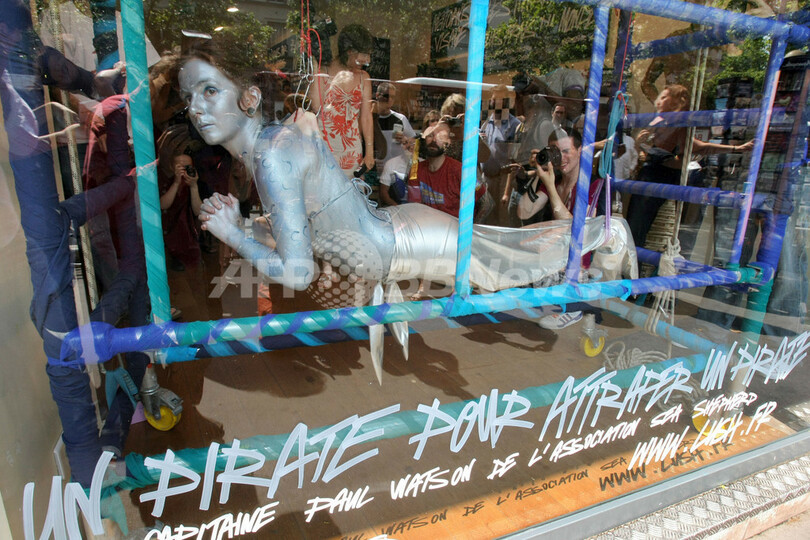 ラッシュは、環境保護活動団体シー・シェパート(Sea Shepherd)と連携し、サメの過剰捕獲に反対する運動を展開しており、ニューステッドさんも以前、ラッシュに務めていたことがある(2009年7月2日撮影)。(c)AFP/PIERRE VERDY