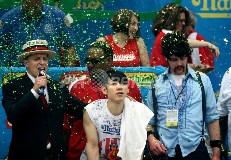 NYホットドック早食い競争、小林さん惜しくも2位に