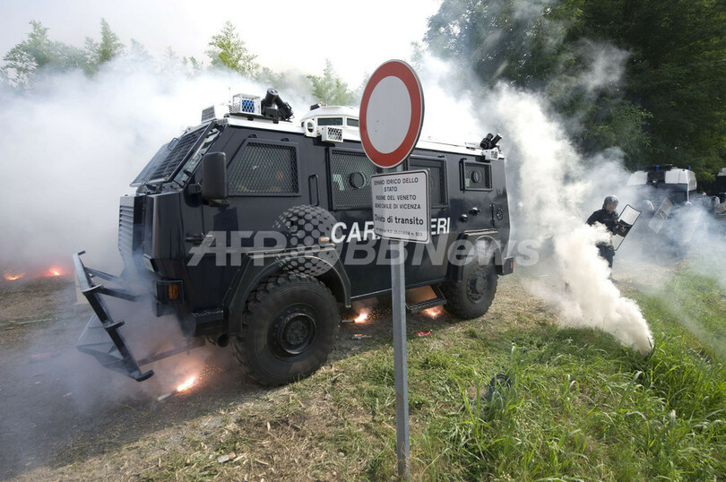 ニュース 政治・経済 米軍基地拡張反対デモで衝突、警官6人負傷 イタリア 2009年7月6日 11:55 発信地:ビチェンツァ/イタリア [ ヨーロッパ イタリア ] このニュースをシェア ‹ › ❮ 4/15 ❯ イタリア北部ビチェンツァ(Vicenza)にあるダルモリン(Dal Molin)米軍基地で4日、約3000人が参加する基地拡張反対デモが行われた。ヘルメットや盾をもった約300人の若者と警官隊と衝突し、警官6人が負傷した。写真は、デモと衝突する警官隊(2009年7月4日撮影)。(c)AFP/Christophe Simon 画像作成中 ! 【7月6日 AFP】(写真追加)イタリア北部ビチェンツァ(Vicenza)にあるダルモリン(Dal Molin)米軍基地で4日、約3000人が参加する基地拡張反対デモが行われた。(c)AFP 政治・経済 一覧へ> メディア・報道関係・法人の方向け 写真・動画 購入のお問合せ>