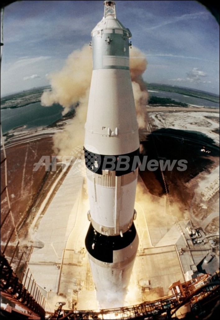 そして1969年7月16日、アームストロング船長を筆頭にオルドリン、マイケル・コリンズ(Michael Collins)飛行士の3人が乗り込んだアポロ11号が、米フロリダ(Florida)州のケネディ宇宙センター(Kennedy Space Center)から現地時間午前9時32分、サターンV型(Saturn V)ロケット(全長111メートル)で打ち上げられた。