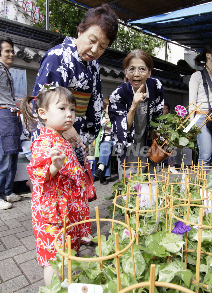 ニュース ライフ 初夏恒例、朝顔市始まる 東京 2009年7月6日 18:21 発信地:東京 [ アジア・オセアニア 東京 ] このニュースをシェア ‹ › ❮ 2/6 ❯ 東京・入谷(Iriya)で初夏恒例の朝顔市が始まり、100軒以上の露店が朝顔の鉢を販売している。市は8日までの3日間。写真は朝顔の鉢を販売する露店の女性(右、2009年7月6日撮影)。(c)AFP/Yoshikazu TSUNO 画像作成中 ! 【7月6日 AFP】東京・入谷(Iriya)で6日、初夏恒例の朝顔市が始まり、100軒以上の露店が朝顔の鉢を販売している。市は8日までの3日間。(c)AFP ライフ 一覧へ> メディア・報道関係・法人の方向け 写真・動画 購入のお問合せ>