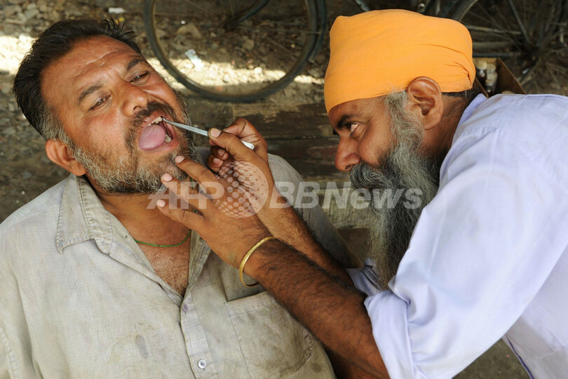 ニュース ライフ こぼれ話 ストリート歯科医が繁盛? インド 2009年7月6日 20:28 発信地:アムリツァル/インド [ アジア・オセアニア インド ] このニュースをシェア ‹ › ❮ 2/3 ❯ インド・アムリツァル(Amritsar)の路上で歯を治療するKulwant Singhさん(右、2009年7月4日撮影)。(c)AFP/NARINDER NANU 画像作成中 ! 【7月6日 AFP】インドでは正式な訓練を受けず、歯科技士や歯科助手として働きながら治療技術を身に着けた人たちが、路上で歯科治療を行っている。1日に150ルピー(約300円)ほどの収入があるという。約5ルピー(約10円)で歯のクリーニングを施術してもらうことができる。(c)AFP ライフ 一覧へ> メディア・報道関係・法人の方向け 写真・動画 購入のお問合せ>