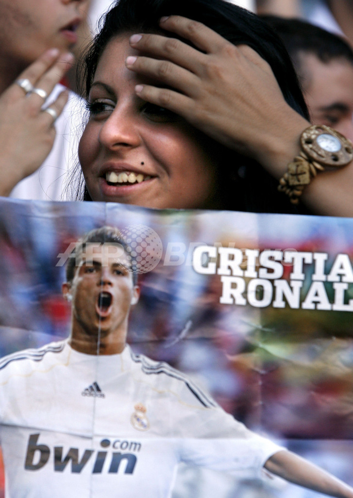 【7月7日 AFP】(写真追加)スペイン1部リーグのレアル・マドリード(Real Madrid)は6日、史上最高額の移籍金9400万ユーロ(約129億円)で移籍したクリスティアーノ・ロナウド(Cristiano Ronaldo)の入団発表をクラブの本拠地サンチャゴ・ベルナベウ(Santiago Bernabeu Stadium)で行った。同クラブによるとスタジアムには8万人近くが集まり、ロナウドを歓迎したという。