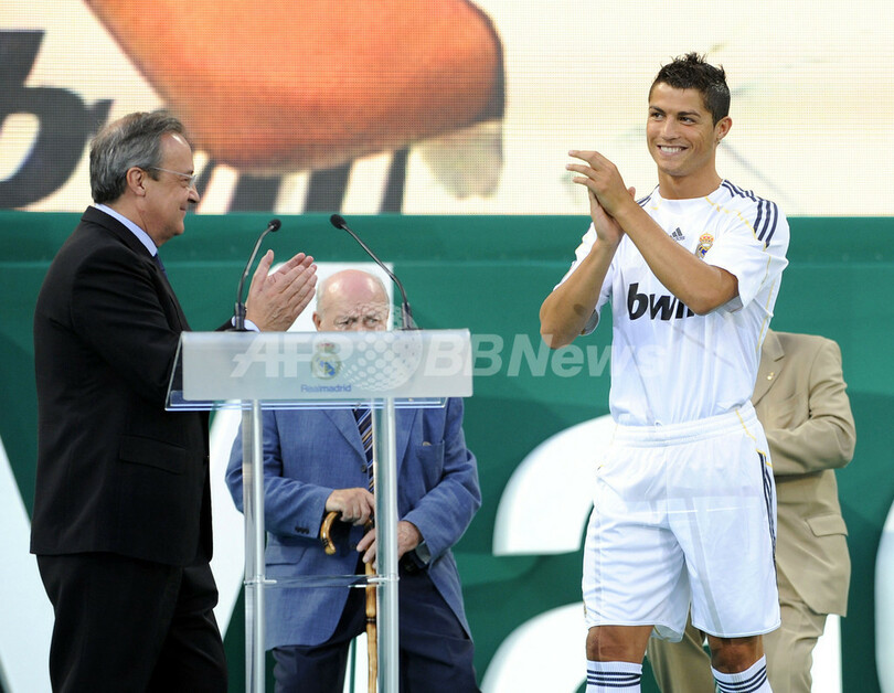 イングランド・プレミアリーグのマンチェスター・ユナイテッド(Manchester United)から念願の移籍がかなったクリスティアーノ・ロナウドは、ファンの前で「ここにいることに大きな幸せを感じている。レアル・マドリードでプレーするという小さい頃からの夢がかなった。ただ僕を見るためだけに、スタジアムが満員になるとは思ってもいなかった」と語った。