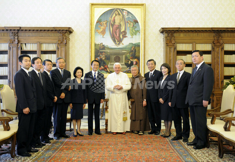 ニュース 政治・経済 麻生首相、ローマ法王と会談 ビデオカメラを贈る 2009年7月8日 10:15 発信地:バチカン市国 [ ヨーロッパ バチカン市国 ] このニュースをシェア ‹ › ❮ 4/6 ❯ 8日からイタリア・ラクイラ(L'Aquila)で開催される主要8か国(G8)首脳会議参加のため同国入りした麻生太郎(Taro Aso)首相は7日、バチカン市国を訪問し、ローマ法王ベネディクト16世(Benedict XVI)と会談した。写真は、内謁中、法王(中央)と写真に納まる麻生首相(中央左)と随行団(2009年7月7日撮影)。(c)AFP/DANILO SCHIAVELLA 画像作成中 ! 【7月8日 AFP】8日からイタリア・ラクイラ(L'Aquila)で開催される主要8か国(G8)首脳会議参加のため同国入りした麻生太郎(Taro Aso)首相は7日、バチカン市国を訪問し、ローマ法王ベネディクト16世(Benedict XVI)と会談した。(c)AFP 政治・経済 一覧へ> メディア・報道関係・法人の方向け 写真・動画 購入のお問合せ>