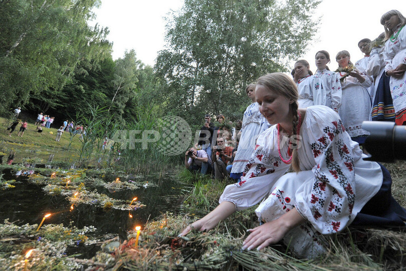 ニュース ライフ たき火飛び越え祝う祭り「イワン・クパーラの夜」、ウクライナ 2009年7月8日 22:40 発信地:キエフ近郊/ウクライナ [ ロシア・CIS ウクライナ ] このニュースをシェア ‹ › ❮ 3/6 ❯ ウクライナの首都キエフ(Kiev)近郊で6日、伝統的なスラブ民族の祭り「イワン・クパーラの夜(Ivan Kupala)」が開かれ、伝統衣装を着た人たちが、たき火を飛び越える行事が行われた。人々は花輪を被ってたき火を飛び越えたり、全裸で泳いだりして祭りを祝う(2009年7月6日撮影)。(c)AFP/SERGEI SUPINSKY 画像作成中 ! 【7月8日 AFP】ウクライナの首都キエフ(Kiev)近郊で6日、伝統的なスラブ民族の祭り「イワン・クパーラの夜(Ivan Kupala)」が開かれ、伝統衣装を着た人たちが、たき火を飛び越える行事が行われた。人々は花輪を被ってたき火を飛び越えたり、全裸で泳いだりして祭りを祝う。(c)AFP ライフ 一覧へ> メディア・報道関係・法人の方向け 写真・動画 購入のお問合せ>