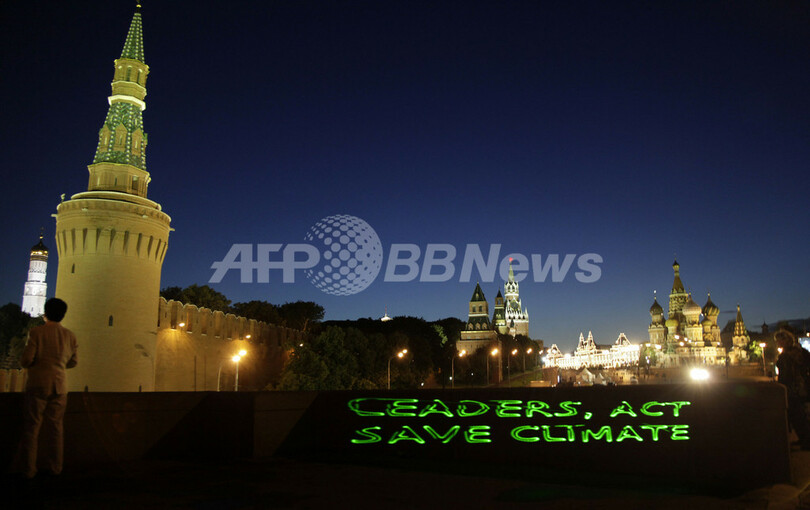 ニュース 環境・科学 こぼれ話 クレムリン付近の壁に環境問題訴えるメッセージ、モスクワ 2009年7月9日 9:11 発信地:モスクワ/ロシア [ ロシア・CIS ロシア ] このニュースをシェア ロシア・モスクワ(Moscow)で、環境保護団体グリーンピース(Greenpeace)がクレムリン(Kremlin)付近の壁に映し出したスローガン(2009年7月7日撮影)。(c)AFP/OXANA ONIPKO 【7月9日 AFP】環境保護団体グリーンピース(Greenpeace)はロシアの首都モスクワ(Moscow)で7日、クレムリン(Kremlin)付近の壁にスローガンを映し出し、ロシアを訪問中だったバラク・オバマ(Barack Obama)米大統領とドミトリー・メドベージェフ(Dmitry Medvedev)ロシア大統領に、気候変動など環境問題に積極的に取り組むよう訴えた。(c)AFP 環境・科学 一覧へ> メディア・報道関係・法人の方向け 写真・動画 購入のお問合せ>
