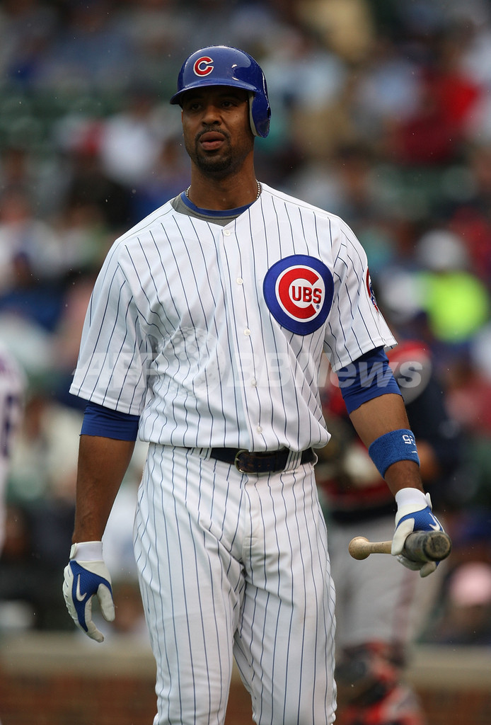 試合は4-1でブレーブスが勝利した。写真は9回、三振を喫してダグアウトへ戻るカブスのデレク・リー(%%Derrek Lee%%)。(2009年7月8日撮影)(c)AFP/Getty Images/Jonathan Daniel
