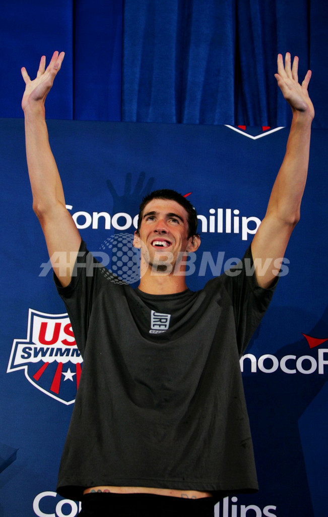 2003年に開催された第10回世界選手権でフェルプスは、同種目の準決勝で世界新記録を樹立したが、翌日の決勝で優勝したクロッカーに記録を塗り替えられている。(c)AFP