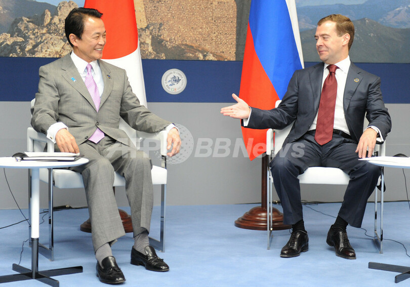 【7月10日 AFP】麻生太郎(Taro Aso)首相は9日、イタリア・ラクイラ(L'Aquila)で開催中の主要8か国(G8)首脳会議(ラクイラ・サミット)の会場で、ロシアのドミトリー・メドベージェフ(Dmitry Medvedev)大統領と会談した。