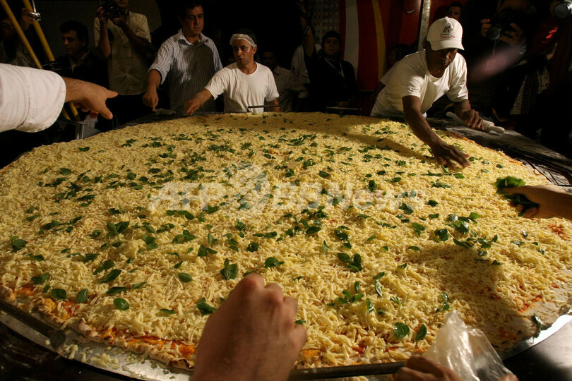 ニュース ライフ こぼれ話 サンパウロで「ピザの日」、直径2メートルの巨大ピザでお祝い 2009年7月11日 14:05 発信地:サンパウロ/ブラジル [ 中南米 ブラジル ] このニュースをシェア ‹ › ❮ 5/6 ❯ ブラジルで「Pizza Day(ピザの日)」を迎えた10日、サンパウロ(Sao Paulo)東部のモオカ(Mooca)のピザ職人らが、直径2.2メートルの巨大ピザ・マルゲリータを焼いてこの日を祝った。モオカには昔からイタリア系の住民が多く暮らす。 巨大ピザの材料は、小麦粉15キロ、トマトソース8キロ、チーズ16キロ、バジル1キロ。焼き上がったビザは500人分にカットされた。ブラジルは世界第2位のピザ消費国で、年間に人々の口に入るピザは実に12億枚に上る。ちなみに1位は米国の30億枚という。写真は、巨大ピザ・マルゲリータの生地にバジルをまんべんなく乗せるシェフたち(2009年7月10日撮影)。(c)AFP/Mauricio LIMA 画像作成中 ! 【7月11日 AFP】ブラジルで「Pizza Day(ピザの日)」を迎えた10日、サンパウロ(Sao Paulo)東部のモオカ( Mooca)のピザ職人らが、直径2.2メートルの巨大ピザ・マルゲリータを焼いてこの日を祝った。モオカは昔からイタリア系の住民が多く暮らす地区。 巨大ピザの材料は、小麦粉15キロ、トマトソース8キロ、チーズ16キロ、バジル1キロ。焼き上がったビザは500人分にカットされた。ブラジルは世界第2位のピザ消費国で、年間に人々の口に入るピザは実に12億枚に上る。ちなみに1位は米国の30億枚。(c)AFP ライフ 一覧へ> メディア・報道関係・法人の方向け 写真・動画 購入のお問合せ>