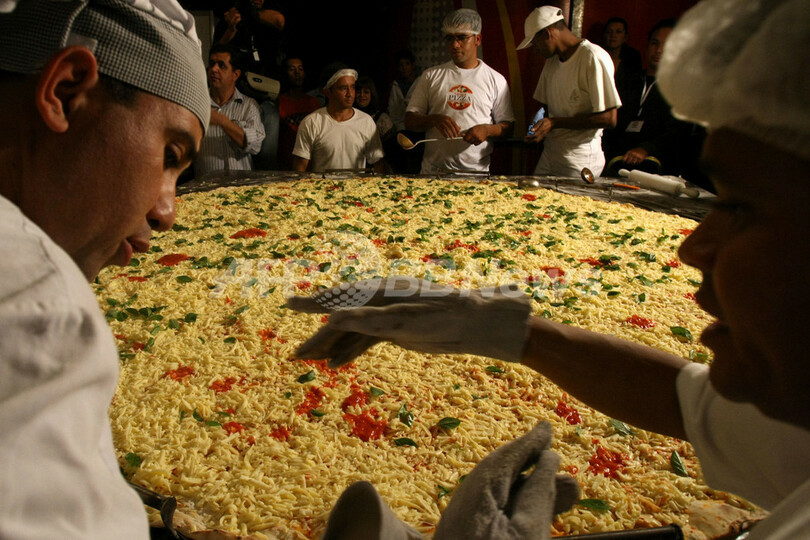 ニュース ライフ こぼれ話 サンパウロで「ピザの日」、直径2メートルの巨大ピザでお祝い 2009年7月11日 14:05 発信地:サンパウロ/ブラジル [ 中南米 ブラジル ] このニュースをシェア ‹ › ❮ 4/6 ❯ ブラジルで「Pizza Day(ピザの日)」を迎えた10日、サンパウロ(Sao Paulo)東部のモオカ(Mooca)のピザ職人らが、直径2.2メートルの巨大ピザ・マルゲリータを焼いてこの日を祝った。モオカには昔からイタリア系の住民が多く暮らす。 巨大ピザの材料は、小麦粉15キロ、トマトソース8キロ、チーズ16キロ、バジル1キロ。焼き上がったビザは500人分にカットされた。ブラジルは世界第2位のピザ消費国で、年間に人々の口に入るピザは実に12億枚に上る。ちなみに1位は米国の30億枚という。写真は、巨大ピザ・マルゲリータを作るシェフたち(2009年7月10日撮影)。(c)AFP/Mauricio LIMA 画像作成中 ! 【7月11日 AFP】ブラジルで「Pizza Day(ピザの日)」を迎えた10日、サンパウロ(Sao Paulo)東部のモオカ( Mooca)のピザ職人らが、直径2.2メートルの巨大ピザ・マルゲリータを焼いてこの日を祝った。モオカは昔からイタリア系の住民が多く暮らす地区。 巨大ピザの材料は、小麦粉15キロ、トマトソース8キロ、チーズ16キロ、バジル1キロ。焼き上がったビザは500人分にカットされた。ブラジルは世界第2位のピザ消費国で、年間に人々の口に入るピザは実に12億枚に上る。ちなみに1位は米国の30億枚。(c)AFP ライフ 一覧へ> メディア・報道関係・法人の方向け 写真・動画 購入のお問合せ>