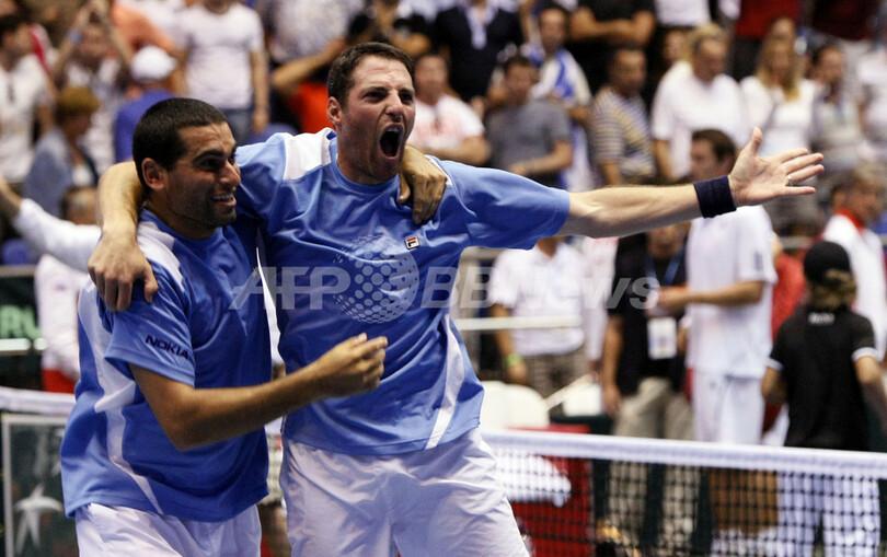【7月12日 AFP】男子テニス国別対抗戦、デビスカップ(2009 Davis Cup)ワールドグループ準々決勝、イスラエル対ロシア。2日目はダブルスが行なわれ、イスラエルのジョナサン・アーリック(Jonathan Erlich)/アンディ・ラム(Andy Ram)組が、ロシアのイゴール・クニツィン(Igor Kunitsyn)/マラト・サフィン(Marat Safin)組を6-3、6-4、6-7、4-6、6-4で下し、3連勝で初の準決勝進出を決めた。イスラエルは9月に行なわれる準決勝で前回王者スペインとドイツの勝者と対戦する。(c)AFP