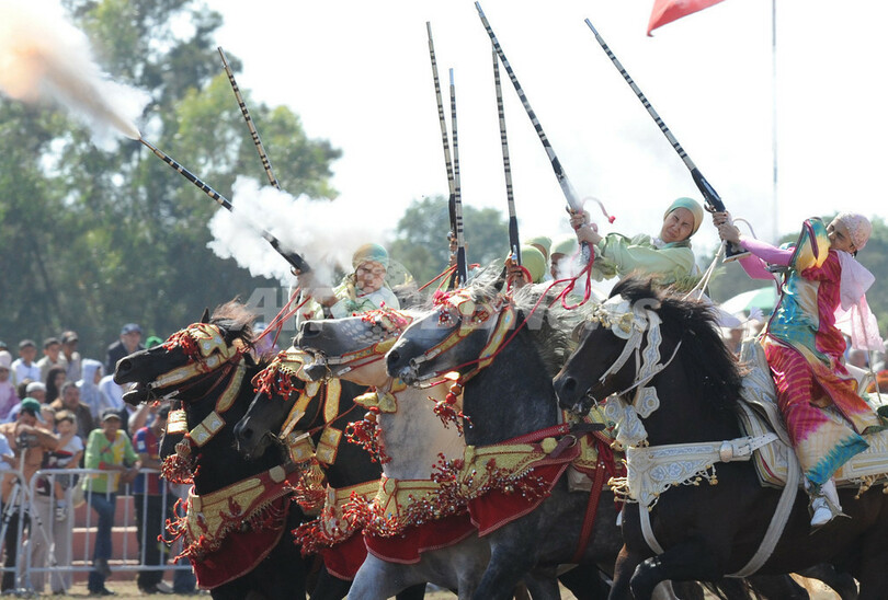 ニュース ライフ 伝統の騎馬祭り「ファンタジア」、モロッコ 2009年7月13日 22:30 発信地:ラバト/モロッコ [ 中東・北アフリカ モロッコ ] このニュースをシェア ‹ › ❮ 17/23 ❯ モロッコの首都ラバト(Rabat)で、伝統の騎馬戦術を再現する祭り「ファンタジア(Fantasia)」が開催された。写真は馬に乗る女性の参加者(2009年7月9日撮影)。(c)AFP/FADEL 画像作成中 ! 【7月13日 AFP】モロッコの首都ラバト(Rabat)で、伝統の騎馬戦術を再現する祭り「ファンタジア(Fantasia)」が開催された。(c)AFP ライフ 一覧へ> メディア・報道関係・法人の方向け 写真・動画 購入のお問合せ>