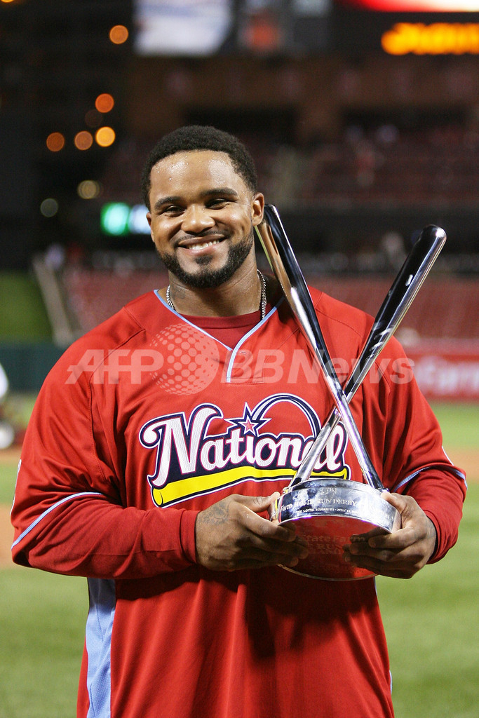 両リーグ最多となる本塁打32本を記録しているセントルイス・カージナルス(St. Louis Cardinals)のアルバート・プホルス(Albert Pujols)は、準決勝で敗退した。(c)AFP