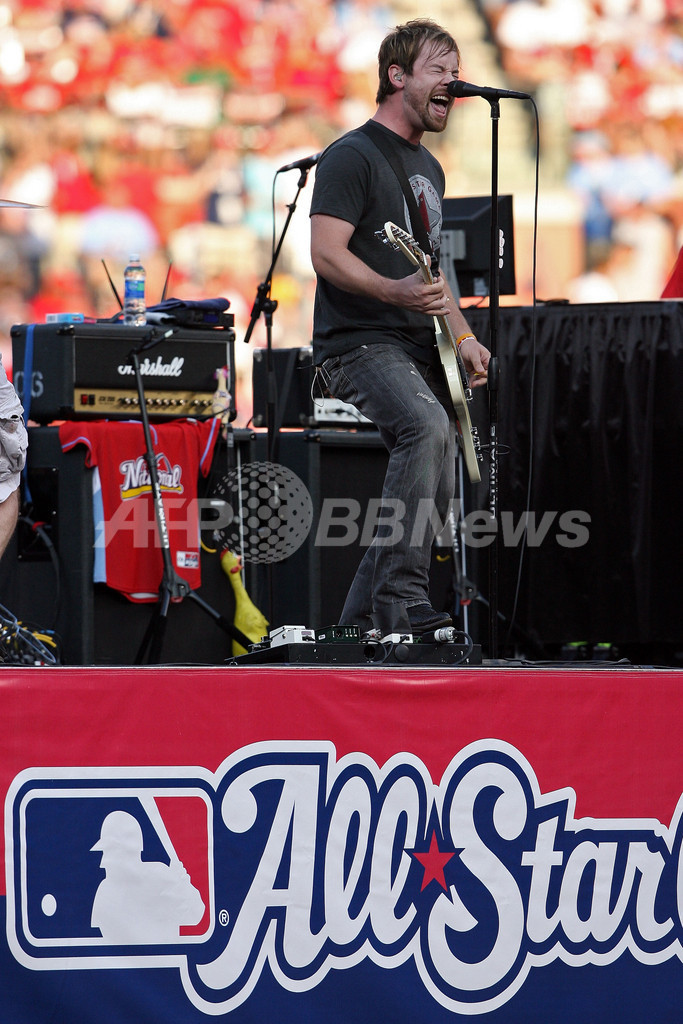 両リーグ最多となる本塁打32本を記録しているセントルイス・カージナルス(%%St. Louis Cardinals%%)のアルバート・プホルス(%%Albert Pujols%%)は、準決勝で敗退した。写真は競争開始前にパフォーマンスを披露するミュージシャンのデヴィッド・クック(%%David Cook%%)。(2009年7月13日撮影)(c)AFP/Getty Images/Elsa