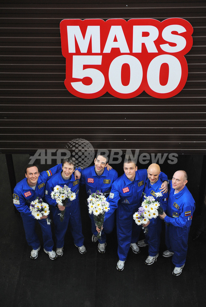 本物の宇宙飛行士に見まがう青いオーバーオールを身につけたロシア人4人、フランス人とドイツ人各1人の計6人は、この日、外界から遮断された105日間の実験生活を終え、にこやかに「宇宙船」から出てきて、花束を受け取った。全員、健康そうだ。