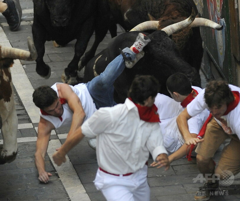 12日の牛追いでは、集団から外れた別の牛に男性4人が突かれた。4人のうち2人は重傷だった。このほかにも、祭りの開催期間中には、オーストラリア人、英国人、米国人ら観光客を含む数十人が牛に体当たりされたりひき倒され、骨折したりあざを作るなどのけがをした。