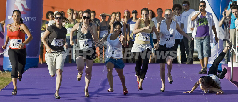 【7月17日 AFP】イスラエル・テルアビブ(Tel Aviv)の海岸近くで16日、ハイヒールを履いた女性による徒競争「レース・オン・ヒールズ(Race on Heels)」が開催された。オランダ・アムステルダム(Amsterdam)、米ニューヨーク(New York)、独ベルリン(Berlin)で人気の同レースが、イスラエルで開催されるのは今回が初めて。レースの参加条件は、高さ7センチ以上のヒールをはき50メートルのトラックを走ることとされている。(c)AFP