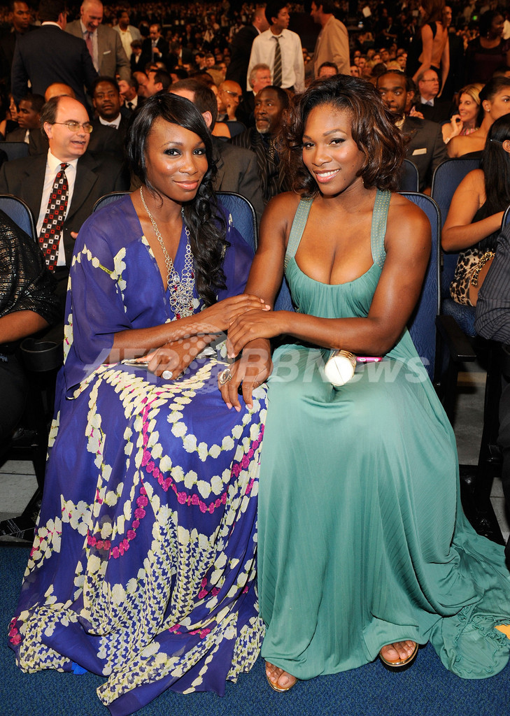 写真は、授賞式に参加した女子テニスのヴィーナス・ウィリアムス(Venus Williams、左)とセレーナ・ウィリアムス(Serena Williams、2009年7月15日撮影)。(c)AFP/Getty Images for ESPY/Kevork Djansezian