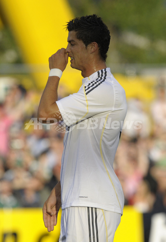【7月21日 AFP】スペイン1部リーグのレアル・マドリード(Real Madrid)に移籍したクリスティアーノ・ロナウド(Cristiano Ronaldo)が20日、ダブリン(Dublin)で行なわれたシャムロック・ローバーズ(Shamrock Rovers)との親善試合でレアル移籍後初出場を果たした。