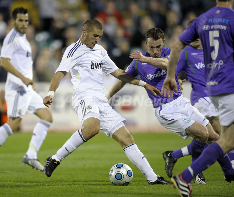 試合はフランス・リーグ1のオリンピック・リヨン(Olympique Lyon)から移籍金3500万ユーロ(約47億8000万円)で移籍したカリム・ベンゼマ(Karim Benzema)が決勝点を挙げたレアル・マドリードが1-0で勝利を収めた。(c)AFP
