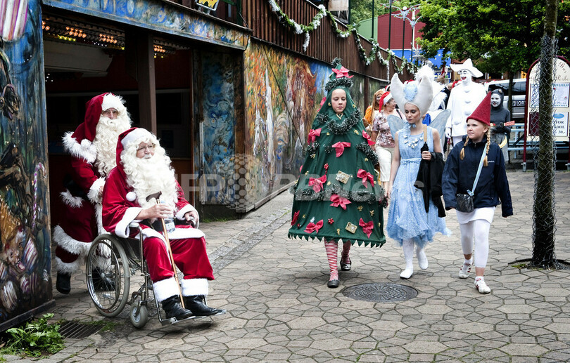 【7月21日 AFP】毎年恒例の「世界サンタクロース会議(World Santa Claus Congress)」が20日、デンマーク・コペンハーゲン(Copenhagen)の北方にあるバッケン(Bakken)遊園地で開幕した。3日にわたって開催されるこの会議に、世界各国から136人の代表者たちがサンタの衣装に身を包んで参加している。(c)AFP