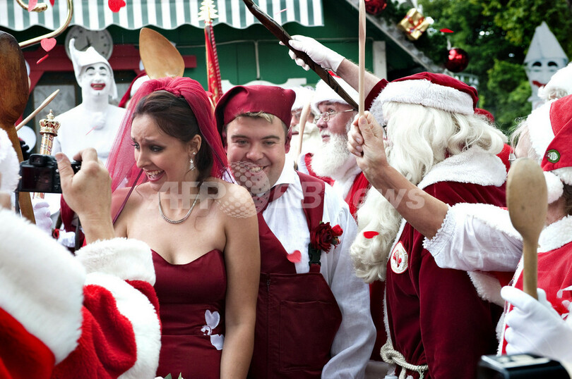 【7月21日 AFP】毎年恒例の「世界サンタクロース会議(World Santa Claus Congress)」が20日、デンマーク・コペンハーゲン(Copenhagen)の北方にあるバッケン(Bakken)遊園地で開幕した。3日にわたって開催されるこの会議に、世界各国から136人の代表者たちがサンタの衣装に身を包んで参加している。(c)AFP