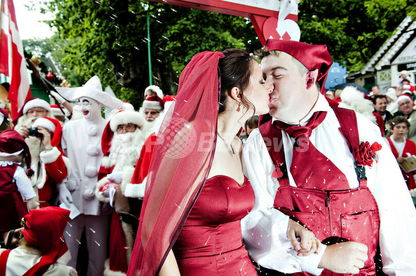 【7月21日 AFP】毎年恒例の「世界サンタクロース会議(World Santa Claus Congress)」が20日、デンマーク・コペンハーゲン(Copenhagen)の北方にあるバッケン(Bakken)遊園地で開幕した。3日にわたって開催されるこの会議に、世界各国から136人の代表者たちがサンタの衣装に身を包んで参加している。(c)AFP