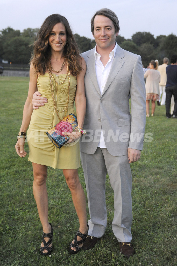 女優サラ・ジェシカ・パーカー(Sarah Jessica Parker)と俳優のマシュー・ブロデリック(Matthew Broderick)夫妻も揃って参加。サラ・ジェシカは、「テンパリー・ロンドン(Temperley London)」のベアトップ・ミニドレスにゴールドのネックレス、黒いサンダル、柄物のクラッチバッグを合わせたサマーパーティに相応しいスタイルで登場。