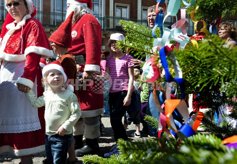 デンマーク・コペンハーゲン(Copenhagen)で3日間の日程で開催中の「世界サンタクロース会議(World Santa Claus Congress)」が2日目を迎えた。世界各国から136人の「サンタ代表団」が集まっている。写真は、会議2日目に出席するサンタや妖精のコスチュームを着た参加者ら(2009年7月21日撮影)。(c)AFP/SCANPIX/ CASPER CHRISTOFFERSEN