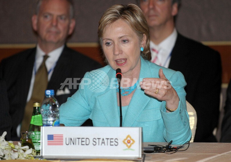 【7月23日 AFP】東南アジア諸国連合(ASEAN)地域フォーラム(ARF)に参加するためタイのリゾート地プーケット(Phuket)を訪問中のヒラリー・クリントン(Hillary Clinton)米国務長官は22日、北朝鮮を除く6か国協議参加国のロシア、中国、日本、韓国との協議後、記者会見を開き、「完全で逆戻りできない非核化が、北朝鮮が存続できる唯一の道だ」と強調した。