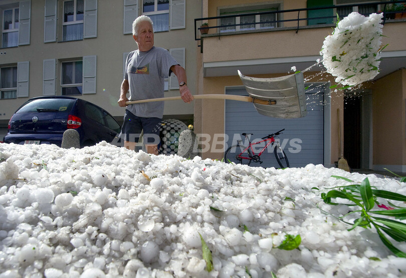 ニュース 社会 こぼれ話 鶏卵サイズのひょうに大わらわ、スイス 2009年7月24日 14:10 発信地:ローザンヌ/スイス [ ヨーロッパ スイス ] このニュースをシェア ‹ › ❮ 4/5 ❯ 23日、スイス西部ローザンヌ(Lausanne)周辺をひょうの嵐が襲った。写真は、ローザンヌ近くのEchallensでひょうを取り除く男性(2009年7月23日撮影)。(c)AFP/FABRICE COFFRINI 画像作成中 ! 【7月24日 AFP】23日、スイス西部ローザンヌ(Lausanne)周辺をひょうの嵐が襲った。(c)AFP 社会 一覧へ> メディア・報道関係・法人の方向け 写真・動画 購入のお問合せ>