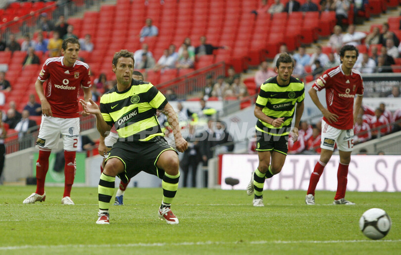 【7月25日 AFP】サッカー親善試合、ウェンブリーカップ2009(Wembley Cup 2009)、セルティック(Celtic)対アル・アハリ(Al Ahly)。試合はスコット・マクドナルド(Scott McDonald)が2得点を記録するなどセルティックが5-0で快勝し、ディナモ・キエフ(Dynamo Kiev)との欧州チャンピオンズリーグ2009-10(UEFA Champions League 2009-10)予選3回戦に向け弾みをつけた。