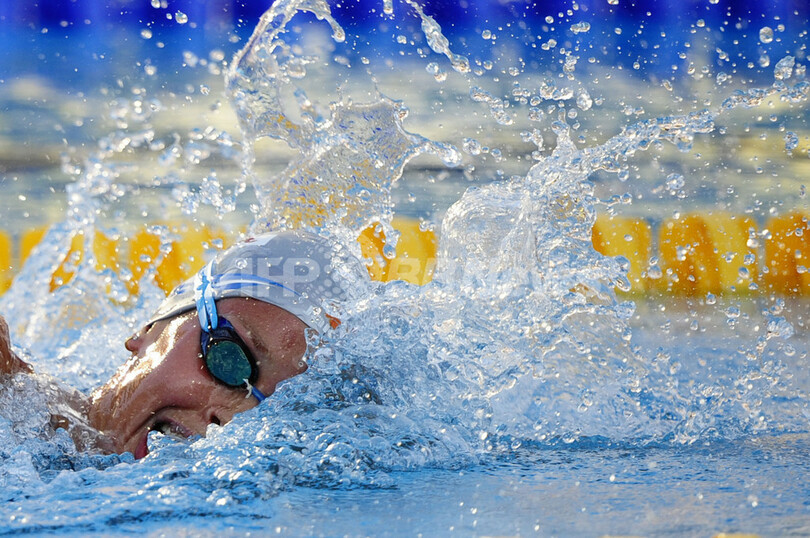 2位には4分00秒60でジョアンナ・ジャクソン(%%Joanne Jackson%%、英国)、3位には4分00秒79で北京五輪・同種目金メダリストのレベッカ・アドリントン(%%Rebecca Adlington%%、英国)が入った。(2009年7月26日撮影)(c)AFP/FILIPPO MONTEFORTE