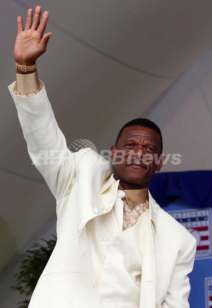 【7月27日 AFP】2009年の野球殿堂入り(Baseball Hall of Fame)表彰式典が26日、ニューヨーク州クーパーズタウン(Cooperstown)で行なわれ、米大リーグ(MLB)の歴代最多盗塁記録を持つリッキー・ヘンダーソン(Rickey Henderson)氏と、1970年代後半から1980年代にボストン・レッドソックス(Boston Red Sox)のスラッガーとして活躍したジム・ライス(Jim Rice)氏が殿堂入りし、表彰を受けた。(c)AFP
