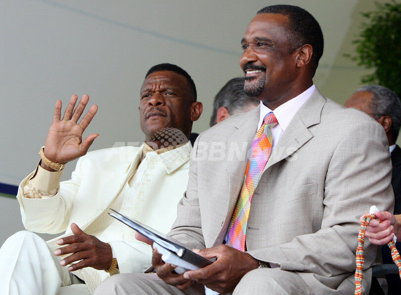 【7月27日 AFP】2009年の野球殿堂入り(Baseball Hall of Fame)表彰式典が26日、ニューヨーク州クーパーズタウン(Cooperstown)で行なわれ、米大リーグ(MLB)の歴代最多盗塁記録を持つリッキー・ヘンダーソン(Rickey Henderson)氏と、1970年代後半から1980年代にボストン・レッドソックス(Boston Red Sox)のスラッガーとして活躍したジム・ライス(Jim Rice)氏が殿堂入りし、表彰を受けた。(c)AFP