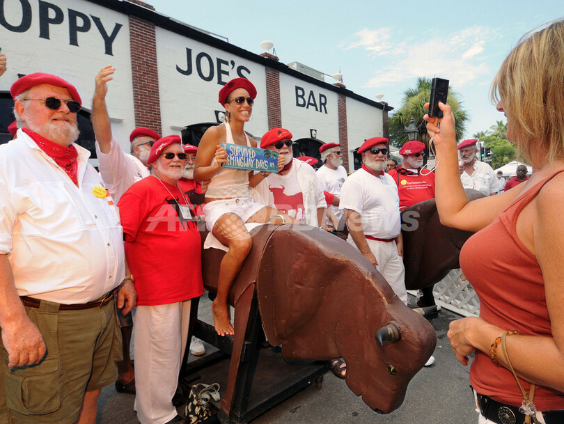 【7月27日 AFP】(写真追加)米フロリダ(Florida)州キーウエスト(Key West)のスロッピー・ジョーズ・バー(Sloppy Joe's Bar)で23-25日、毎年恒例のヘミングウェーそっくりさんコンテストが開催された。同コンテストは、1930年代に同地で暮らした文豪アーネスト・ヘミングウェー(Ernest Hemingway)にちなんで、毎年開かれている「ヘミングウェー・デーズ・フェスティバル(Hemingway Days Festival)」のメーンイベント。今年の優勝者、テキサス州のデービッド・ダグラス(David Douglas)さん(55)は、8回目の挑戦で、ようやく栄冠を手にした。(c)AFP