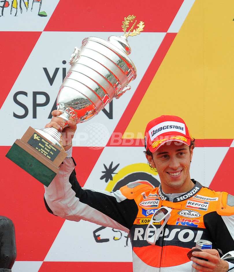 【7月27日 AFP】世界ロードレース選手権(WGP 2009)第10戦英国GP、MotoGPクラス決勝。レプソル・ホンダ(Repsol Honda)のアンドレア・ドビツィオーゾ(Andrea Dovizioso、イタリア)が、48分26秒267で同クラス初優勝を飾った。