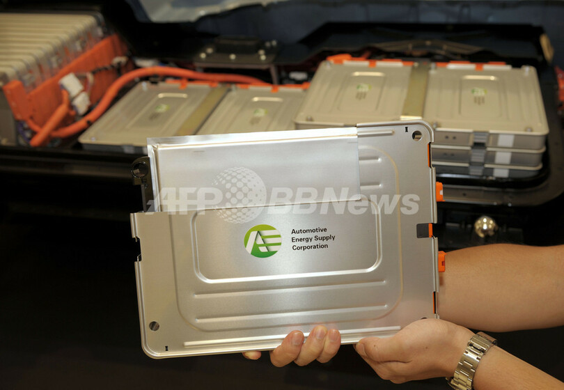 写真は、日産が開発した第二世代EV車両専用のリチウムイオン電池(2009年7月27日撮影)。(c)AFP/TOSHIFUMI KITAMURA